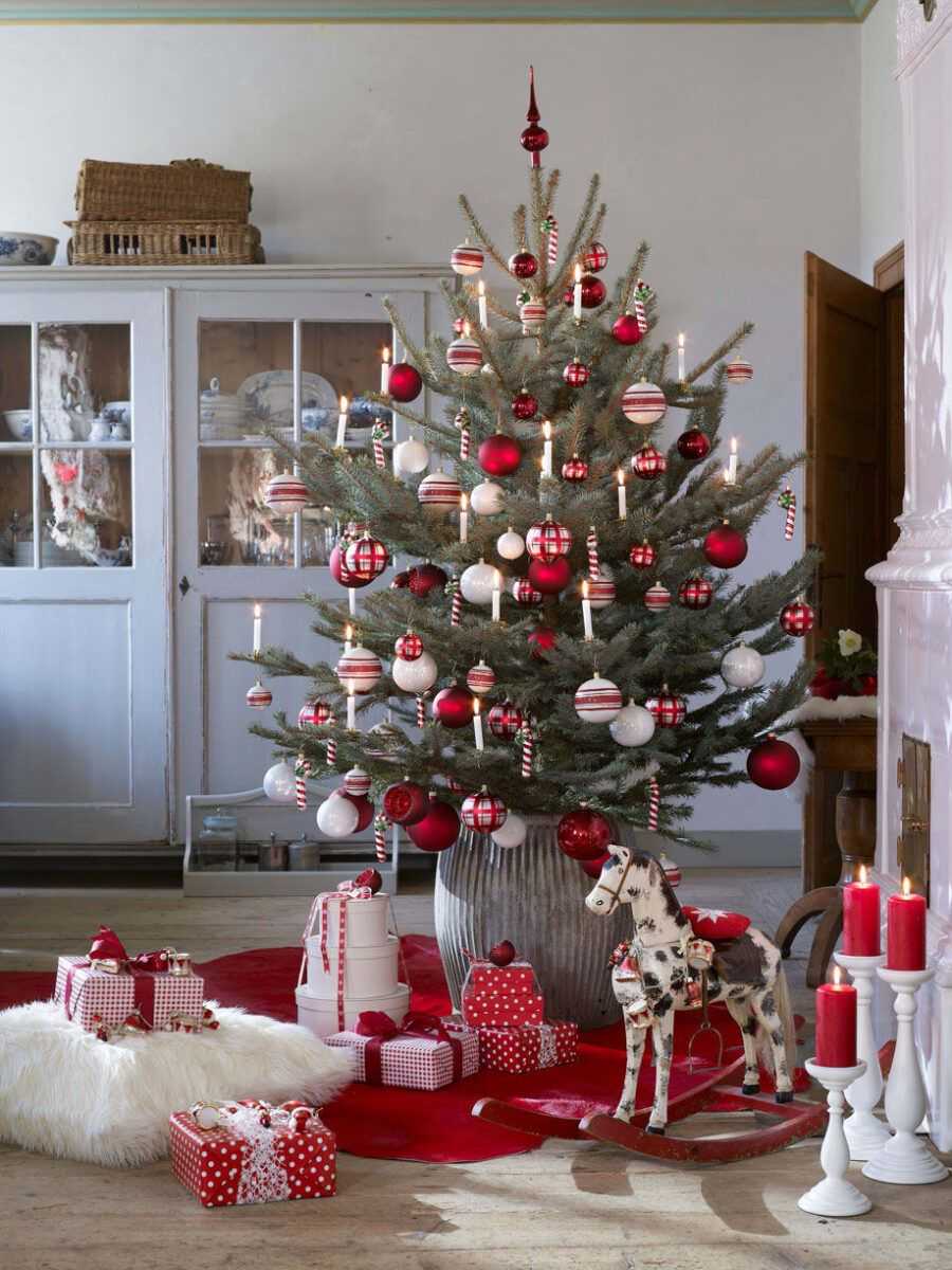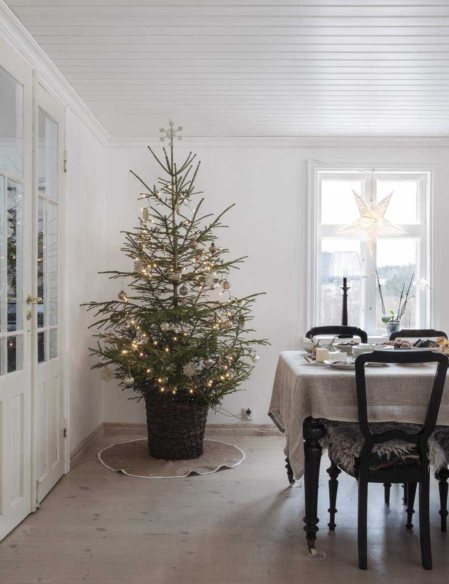 Простой и лаконичный, подойдет даже для офисного деревца. Не придется раздумывать, каким цветом украшать елку на Новый Год, так как используется стандартная для скандинавского направления гамма. Делают ставку на сдержанные тона и вещи ручной работы. Обычно подбирают одноцветный декор или сочетание двух тонов, например, белого и синего. Подойдут как традиционные цвета Рождества, так и монохромные. Пышные гирлянды не используются, должна быть видна хвоя.