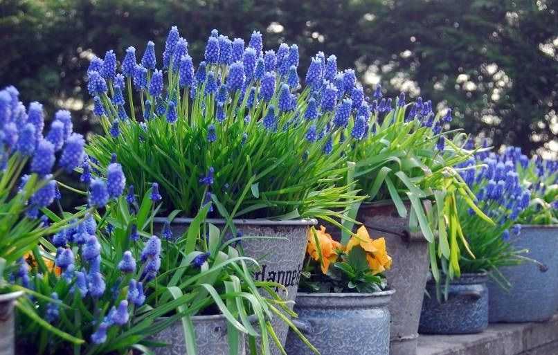 Луковичные и первоцветы весенние отлично смотрятся в контейнерах, которые на время цветения можно поставить на террасе у входа в дом.