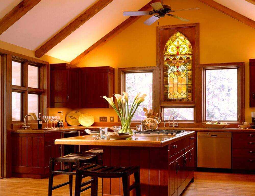 Совет: Прежде чем заказать витраж для кухни или другой комнаты, хорошо продумайте композицию рисунка и интенсивность оттенков. Так вы получите витражное стекло, которое подойдет вашему интерьеру. Фото возможных рисунков можно найти в интернет-каталогах или в портфолио мастерских, которые специализируются на создании витражных композиций.