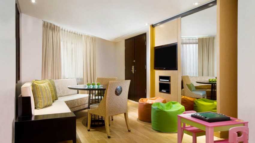 Для двухкомнатных апартаментов наиболее удачным станет решение размещения детской кровати в нише в стене.