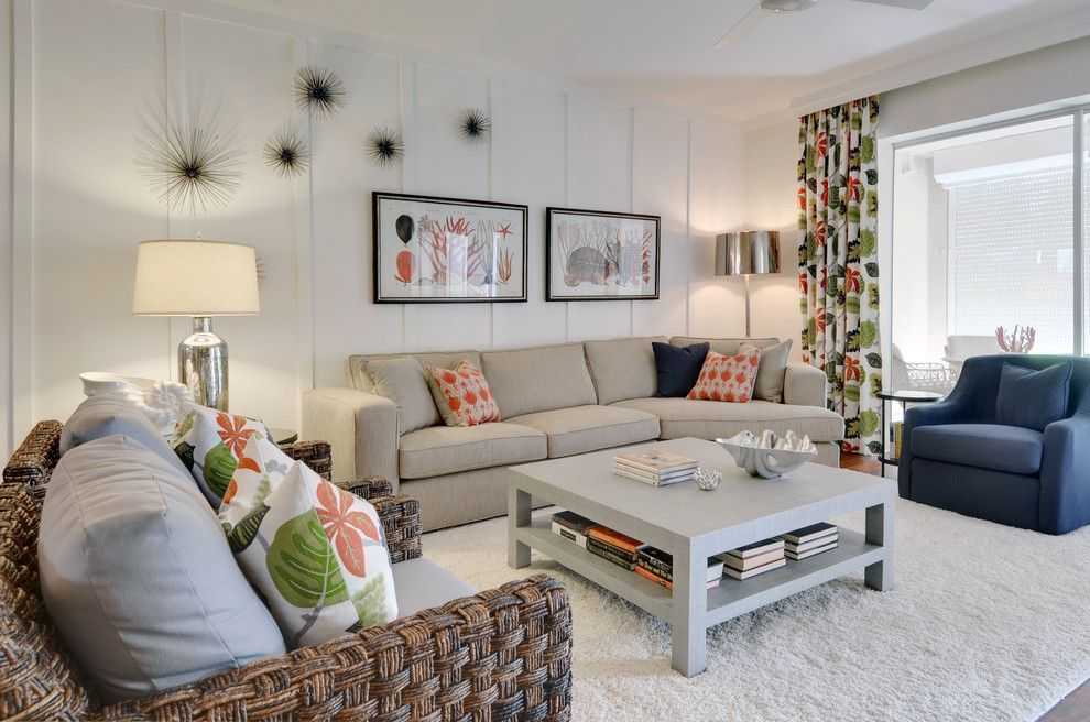 Помимо мягкой мебели вам может понадобиться журнальный столик или тумбочка, а также шкафы для навесного шкафа. Выбирайте мебель так, чтобы она гармонично вписалась в интерьер.