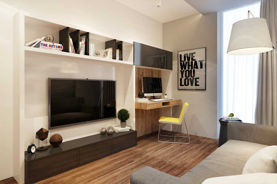 Для подбора подходящих моделей стоит сначала продумать, что именно необходимо именно вам. Конечно, здесь всегда есть диван, телевизор, несколько тумб или ящиков для хранения мелких вещей. В зависимости от наличия других функциональных зон, площади других комнат, в 18 квадратом может понадобиться вписать спальню – кровать, рабочее место для школьника – стол и кресло, игровую зону – ящики и шкафы для игрушек и т.д.