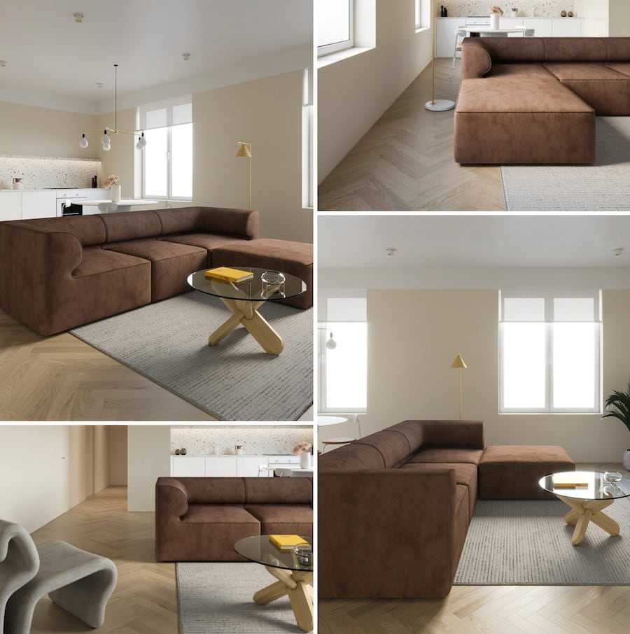 Мягкая мебель обычно представлена диваном, который иногда дополняют парой кресел. Но если выбрать софу, пропорциональную площади комнаты – большую, угловую, модульную, тогда она будет единственным мягким предметом в зале.