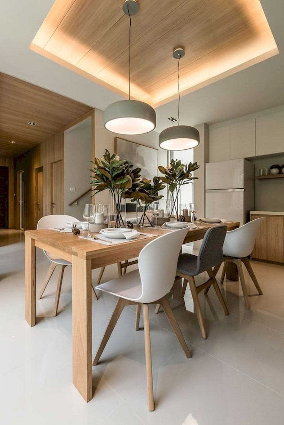 Обеденную зону также выделяют отдельным ярусом. Над столом вешают небольшую люстру или несколько подвесных светильников.