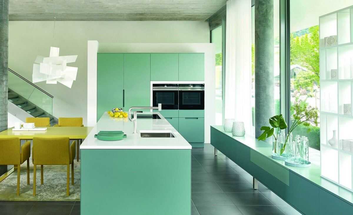 Немного о модных цветах на современной кухне и психологии:зеленый – может оказывать разное влияние, что зависит от вида оттенка, пастельный вариант успокаивает, насыщенный – бодрит, но энергию дает позитивную и правильную;