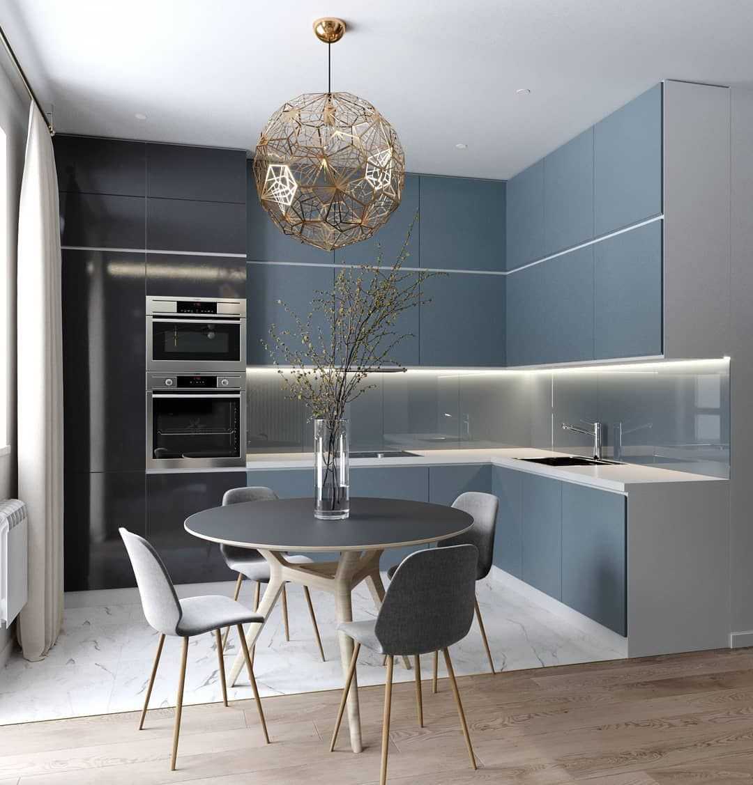 Синий цвет идеален для кухонь, в которых наблюдается переизбыток солнечного света и тепла