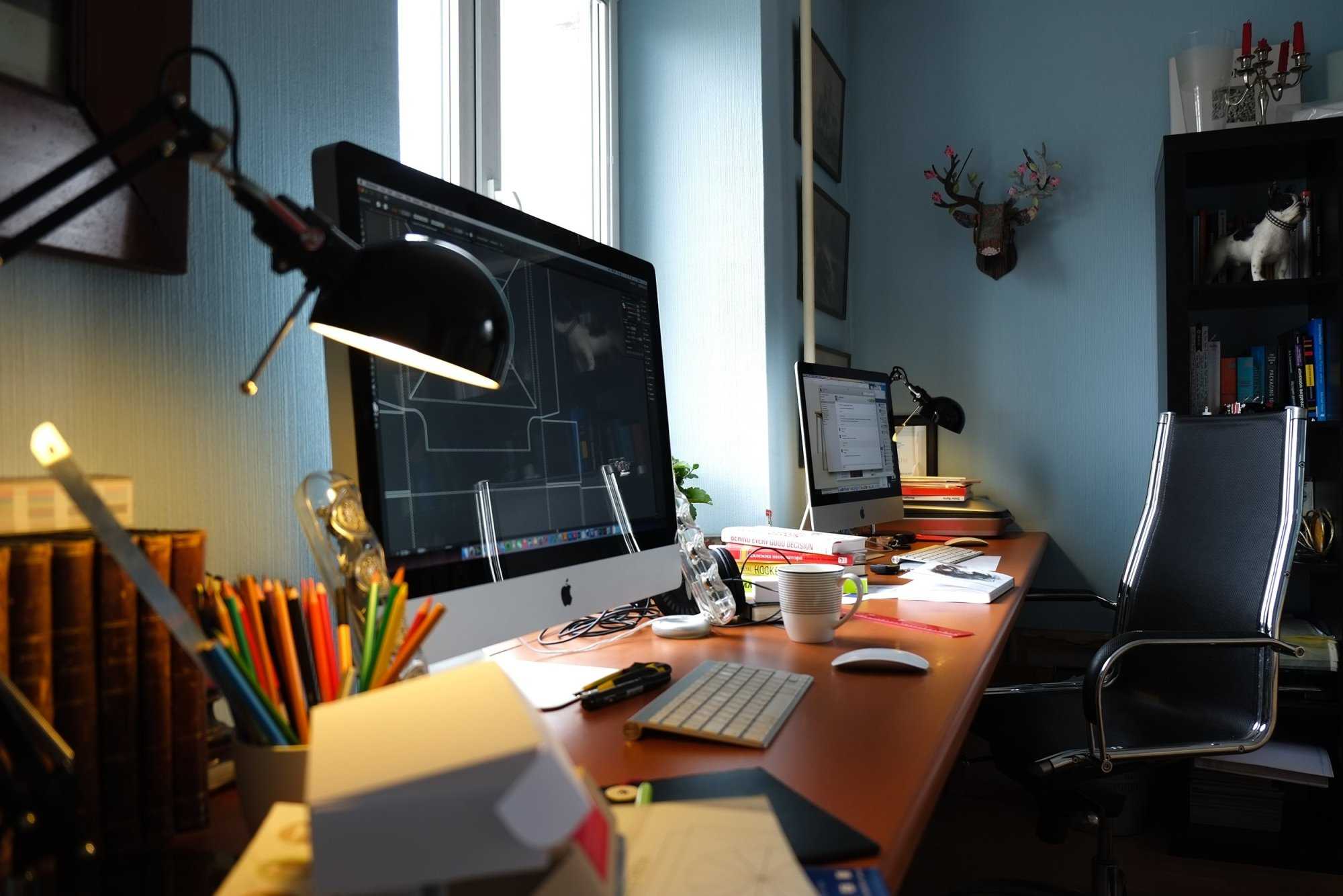 Начните с поиска своего рабочего места. Это должно быть любое помещение квартиры или дома, в котором нет кровати и есть окно. Гостиная, балкон (если он утеплен), кухня, чердак — выбирайте сами и ориентируйтесь на свои возможности. Главное, чтобы атмосфера комнаты не настраивала вас на отдых. В случае долгой работы в спальне, вы не только поймаете себя на низкой производительности труда, но еще и на том, что у вас начинается бессонница. Два пространства лучше не смешивать, иначе мозг может обидеться на такое издевательство и одарить вас дополнительной порцией стресса.