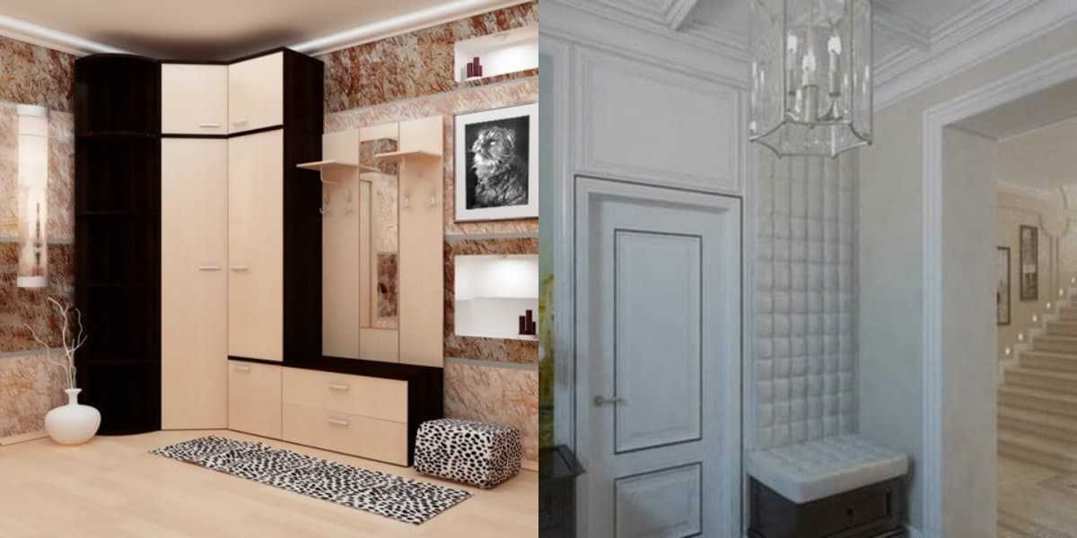 Если прихожая имеет квадратную форму, в ней можно установить угловой шкаф-купе. Он отличается компактностью и вместительностью.