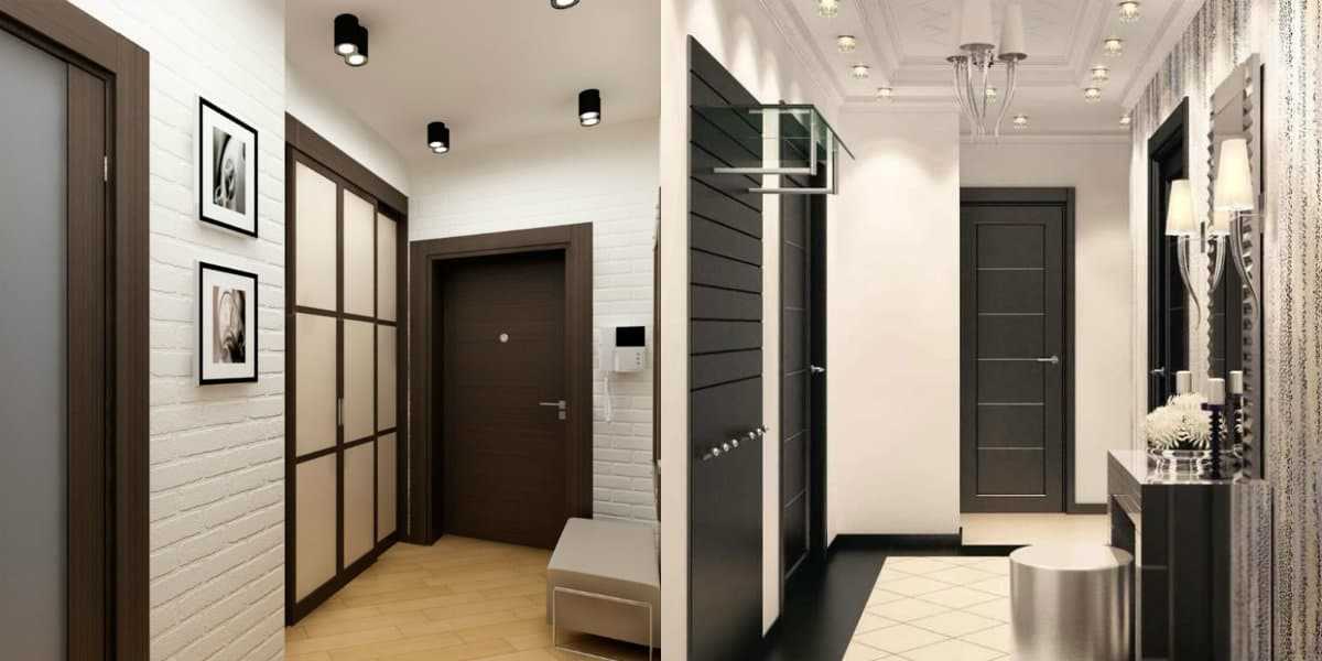 Оформляя прихожую, нужно, в первую очередь, исходить из размеров помещения и общей стилистики квартиры или дома. Поскольку коридоры в российских многоквартирных домах не отличаются большой площадью и подвержены высоким нагрузкам, то желательно выполнить отделку стен износостойкими материалами и в светлых тонах. Также рекомендуется устроить качественную систему освещения. Полы стоит делать из керамогранитной плитки или натурального камня. Из-за недостатка пространства лучше устанавливать встроенную и многофункциональную мебель.