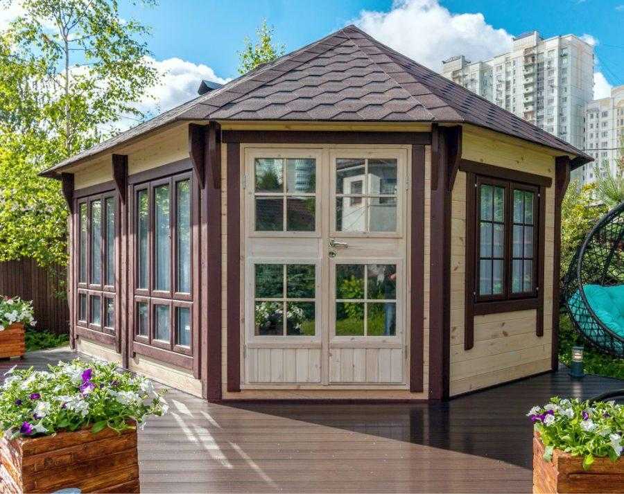 Дерево – отличный материал, но он требует особого обращения и защиты. Если вы живете в дождливом регионе, где выпадает большое количество осадков, лучше задуматься о строительстве беседки из кирпича или металла.