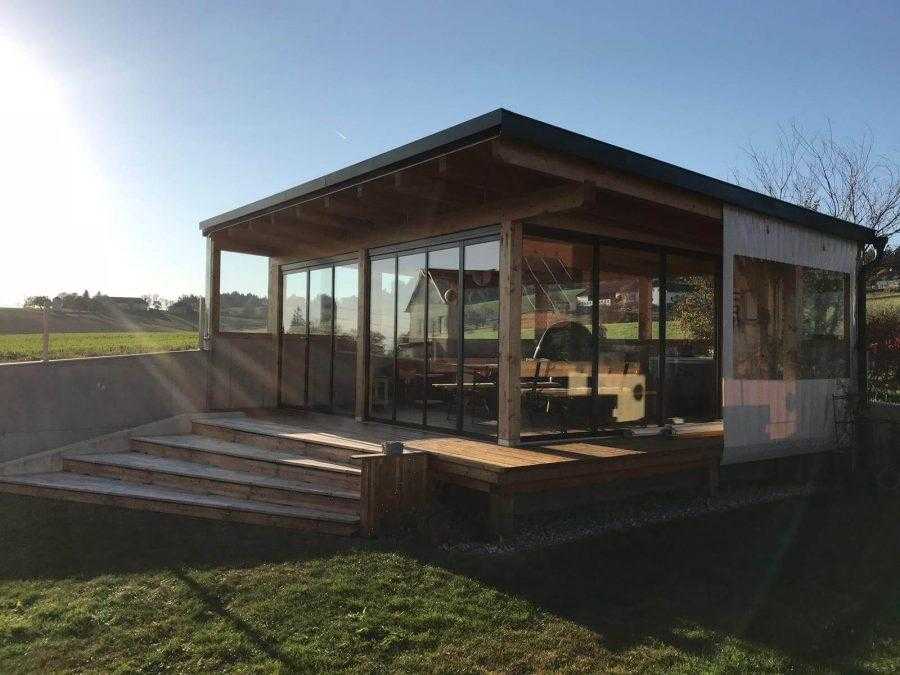 Дерево поможет создать как основательную конструкцию с теплыми окнами и утепленными стенами, так и воздушную, пригодную только для использования в летнее время, однако ее можно украсить как перголу и пустить по стенам и крыше различные виды вьющихся растений.