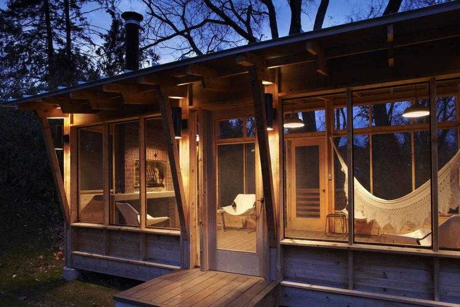 Уютное освещение гирляндой лампочек в ретро-стиле. Если гирлянда светодиодная, расход электричества будет минимальным.Источник binbirders.com