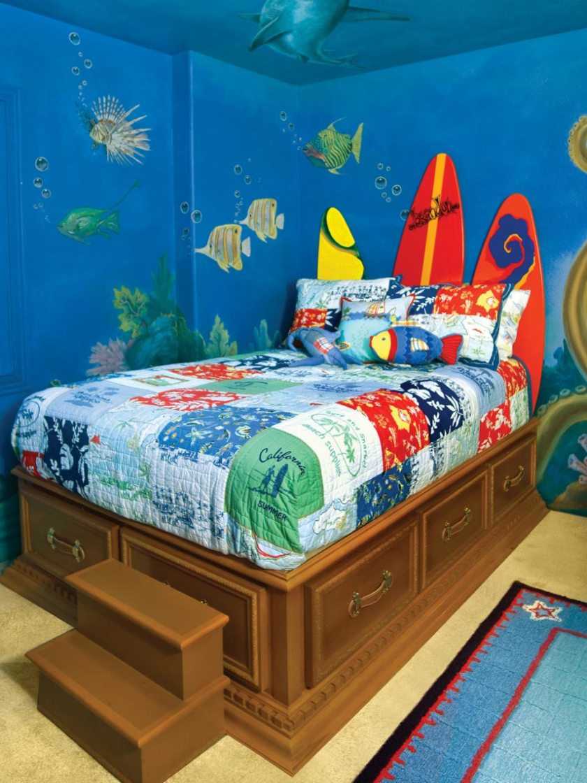Если мальчика притягивает море, можно нарисовать на стене корабль или поставить парусник в шкаф, а в самой комнате развесить канатыИсточник vdome.club