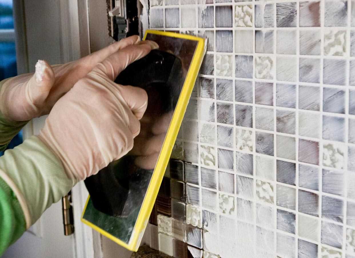 К затирке швов переходите не раньше, чем через сутки после выкладки плитки, иначе риск сдвинуть её с места очень велик. Для затирки потребуется шпатель, резиновая губка.