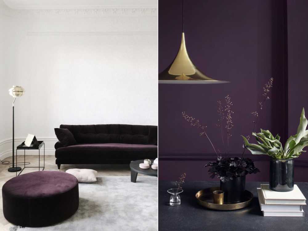 Оттенки фиолетового снова в моде. На этот раз это тусклый, грязный оттенок фиолетового, в котором вы можете покрасить стены. Оттенки сливового цвета также модны. Одна стена в этом оттенке будет отлично смотреться в современном интерьере. Тем не менее, не рекомендуется окрашивать все стены в такой темный цвет, потому что это может привести к перегрузке. Это допускается только в очень больших и хорошо освещенных интерьерах, а в маленькой гостиной выбирайте более светлые оттенки фиолетового.