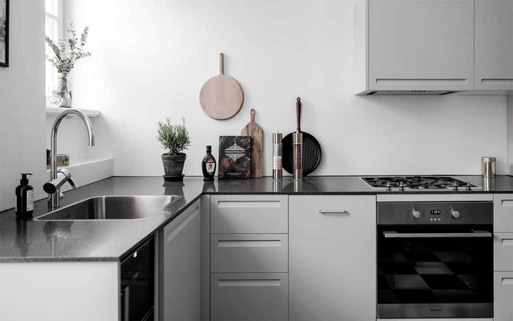 Получается, что самое важное — выбрать правильную текстуру темной столешницы и правильно за ней ухаживать