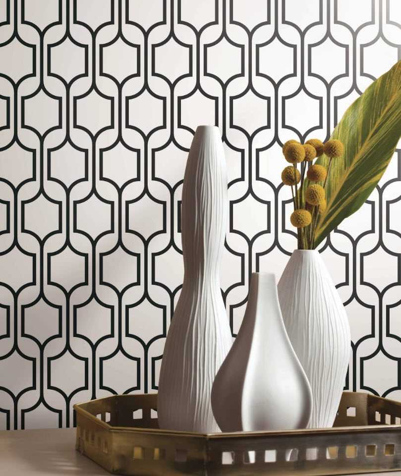 Большие, четкие рисунки — отличная идея для черно-белых обоев в гостиной или коридоре.