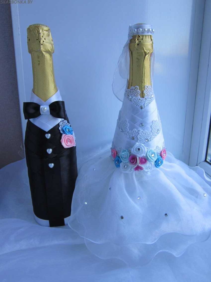 Украшение бутылок на свадьбу своими руками: шампанское жених и невеста
