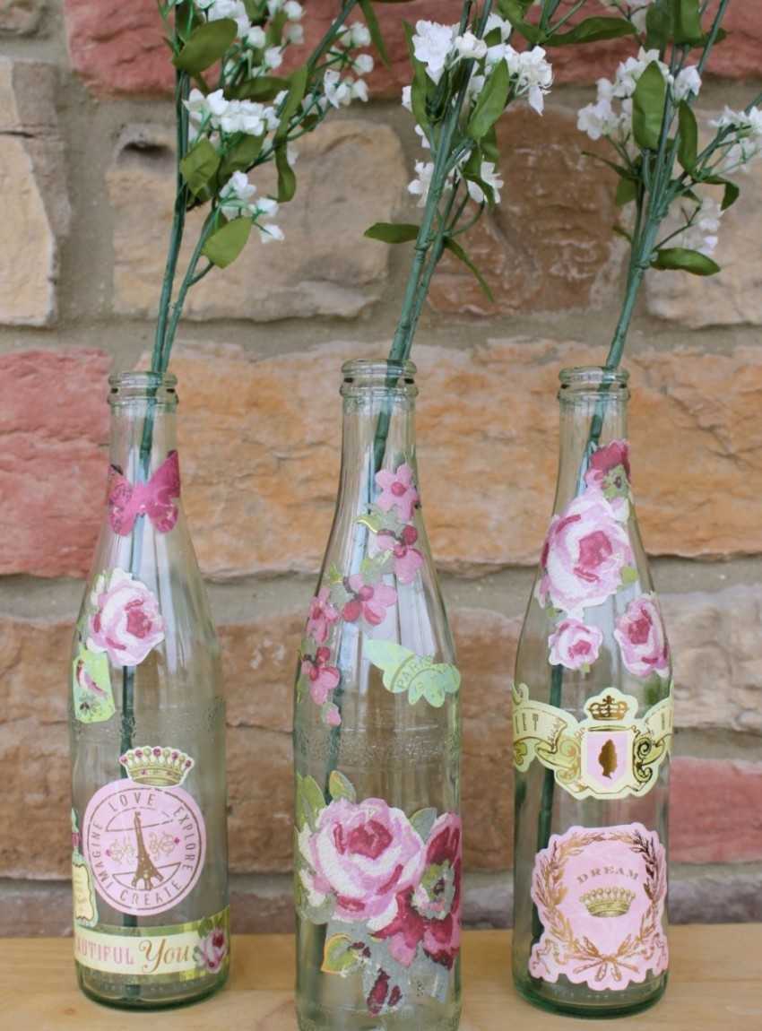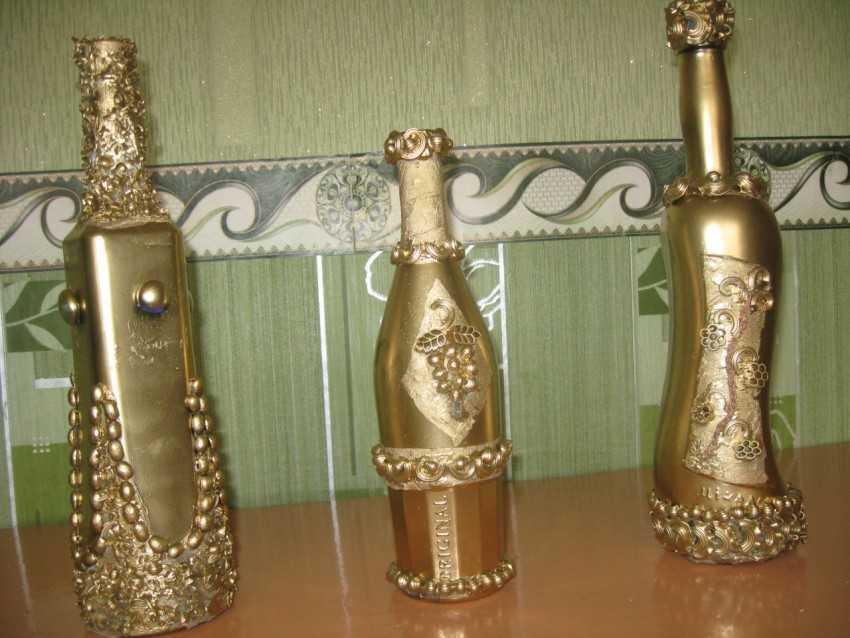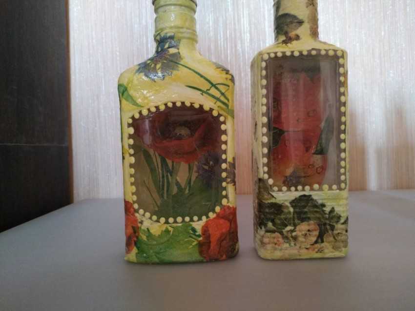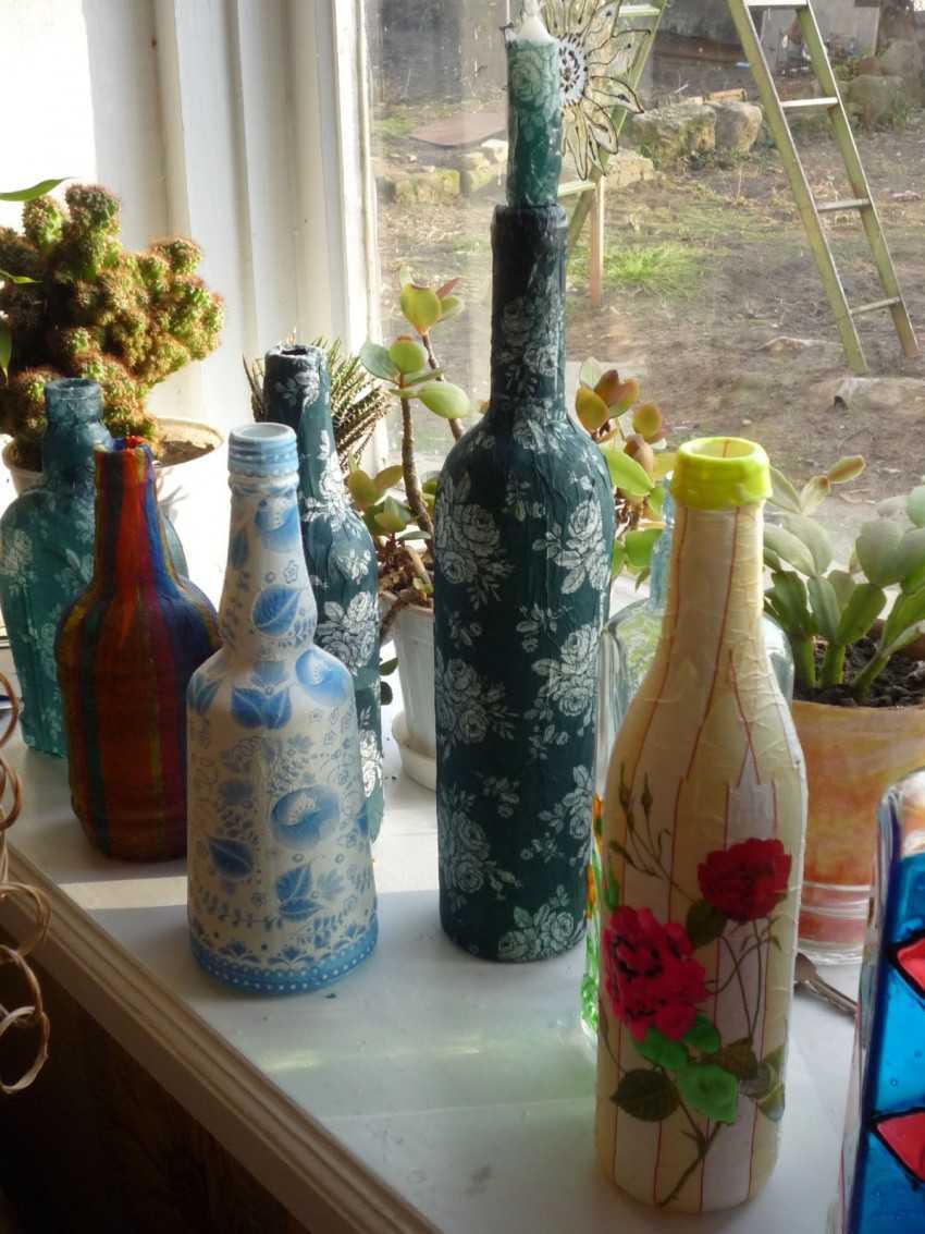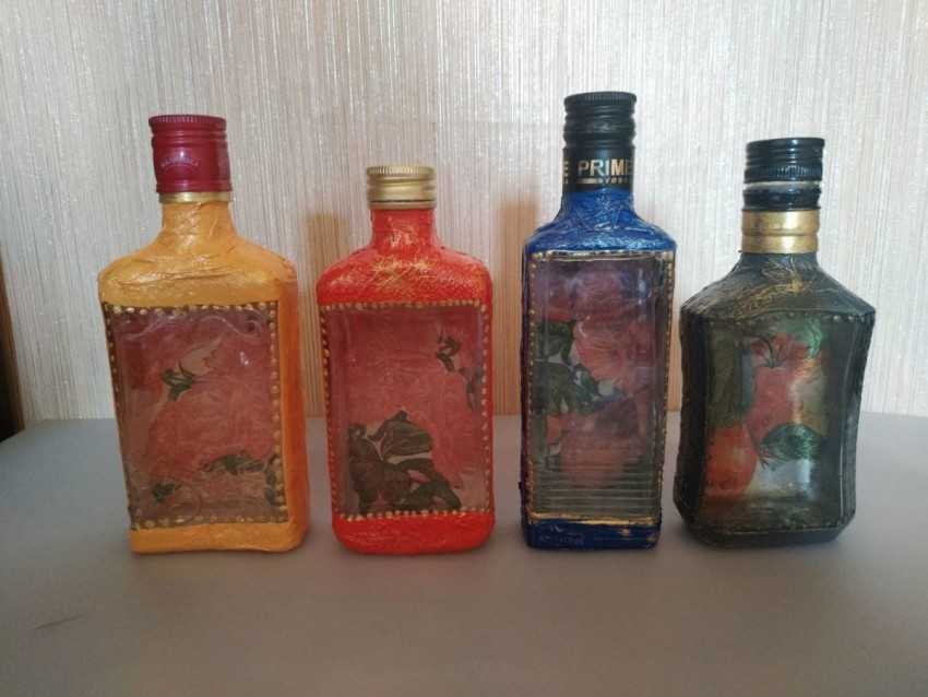 Бутылки необычной формы отлично подойдут для такой техники оформления