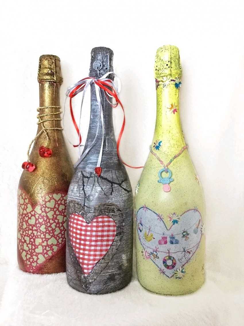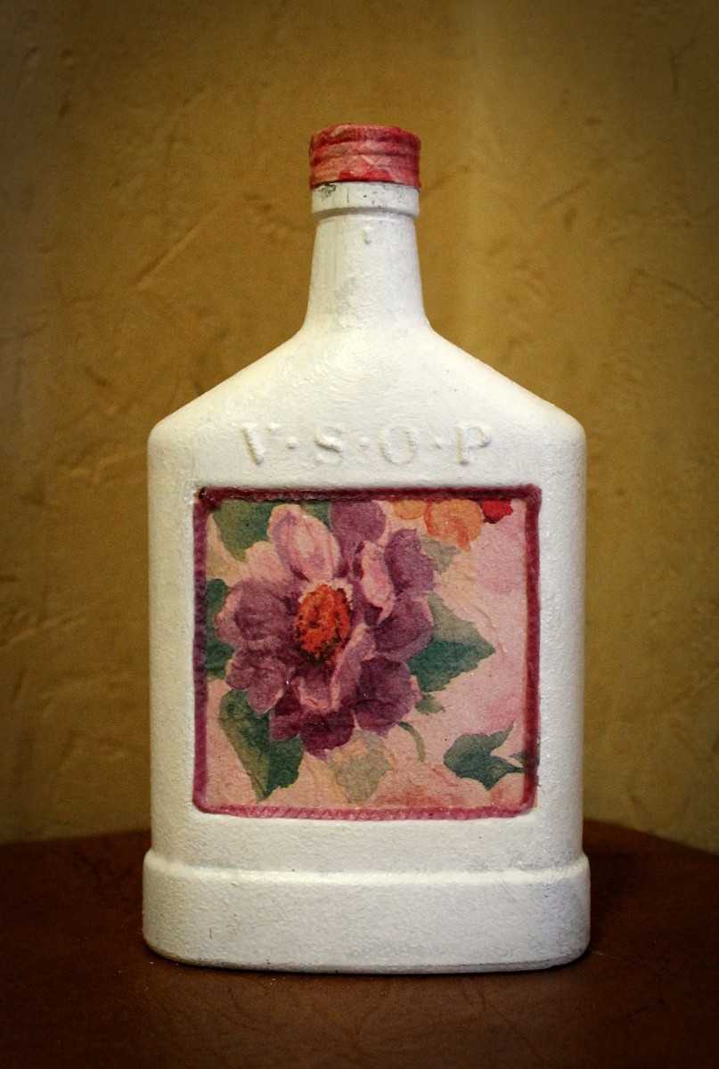 Постижение техники декорирования бутылки позволит создать маленький шедевр своими руками, который можно подарить близким или им украсить свой дом.