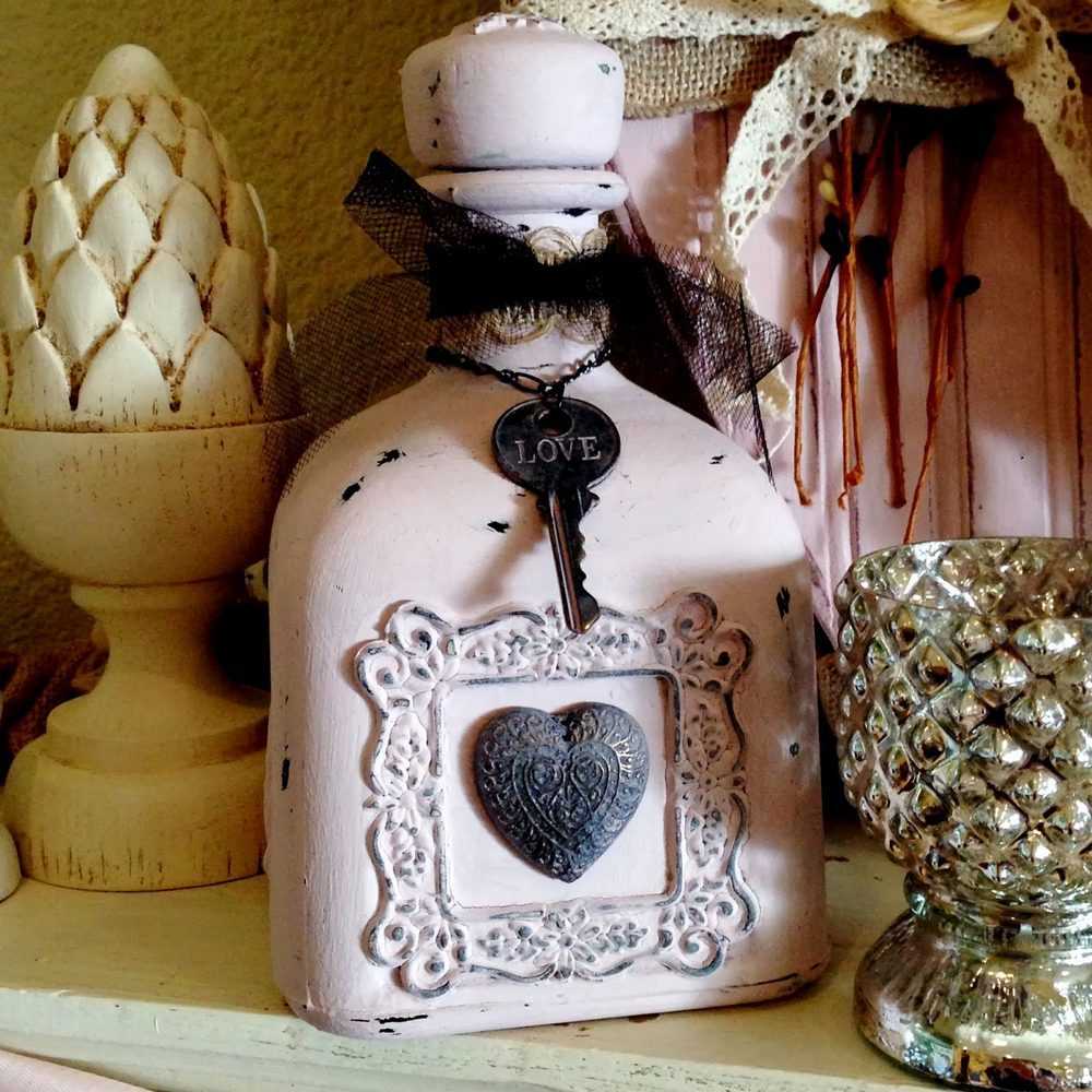 Бутылка, оформленная в технике декупаж в винтажном стиле