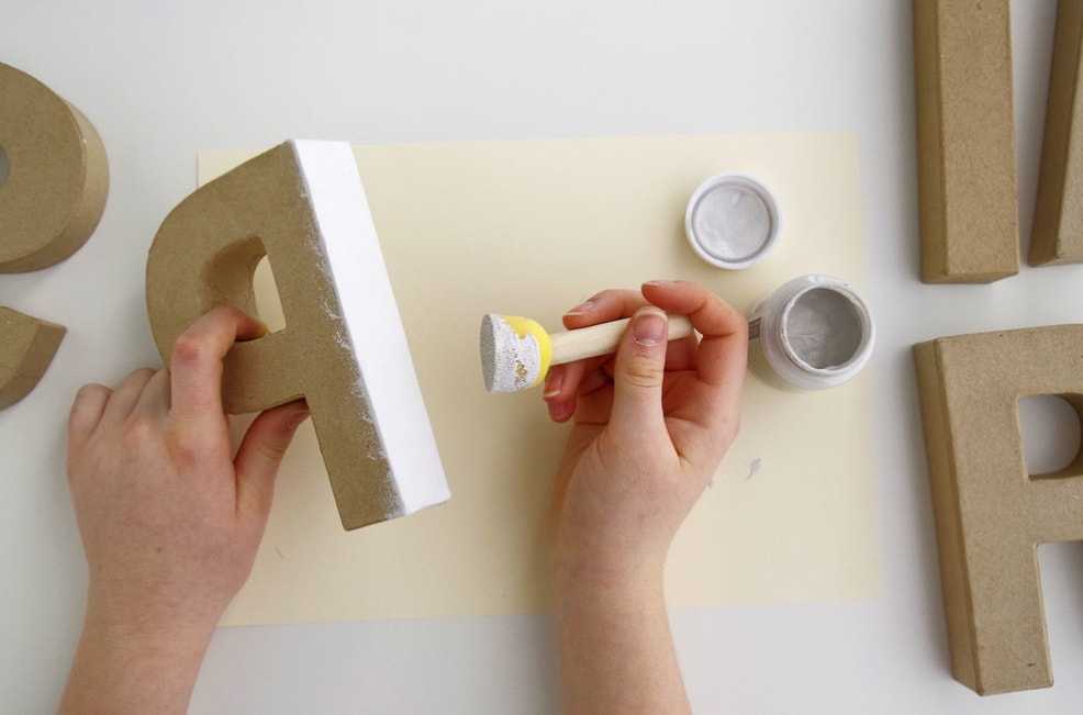 Первым делом покрываем буквы краской белого цвета с помощью губки. Оставляем до полного высыхания.