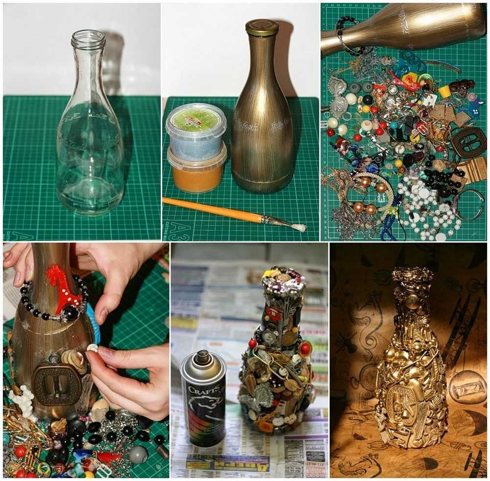 Оригинальный вариант оформления бутылок с помощью пуговок