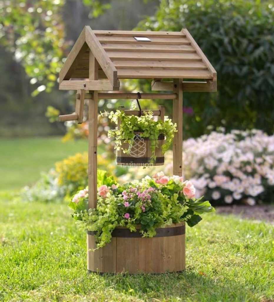 Как вы поняли, ничего сложного нет. Декоративный колодец сам по себе красивый объект. Украшать его цветами стоит, чтобы придать ему индивидуальности!