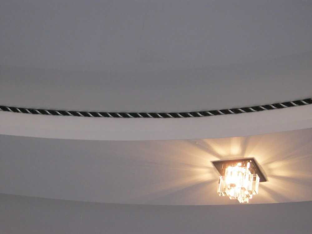 Цвет декоративного шнура лучше выбирать контрастный по отношению к потолку