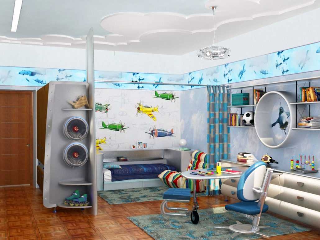 Увлечение мужчин транспортом, самолетами, поездами начинается с детства. Еще в раннем возрасте мальчики интересуются различной техникой. Данное увлечение поможет выбрать тематики дизайна комнаты для мальчика.