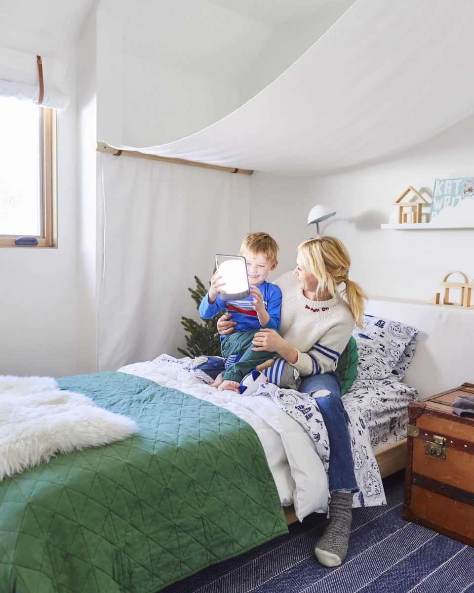 В дополнение к общему освещению в комнате также должна быть лампа, освещающая рабочее место и лампа у кровати, которую ребенок может включать и выключать, не покидая кровати.