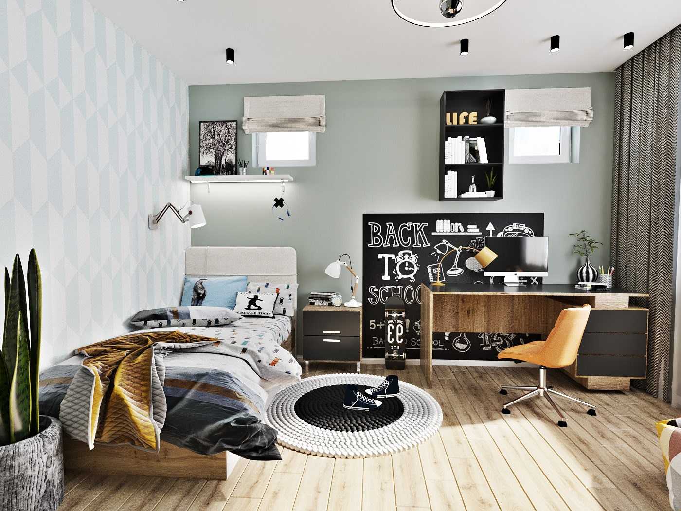 Аскетичный интерьер с грифельной доской в спальне подростка