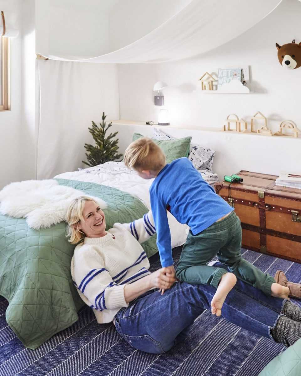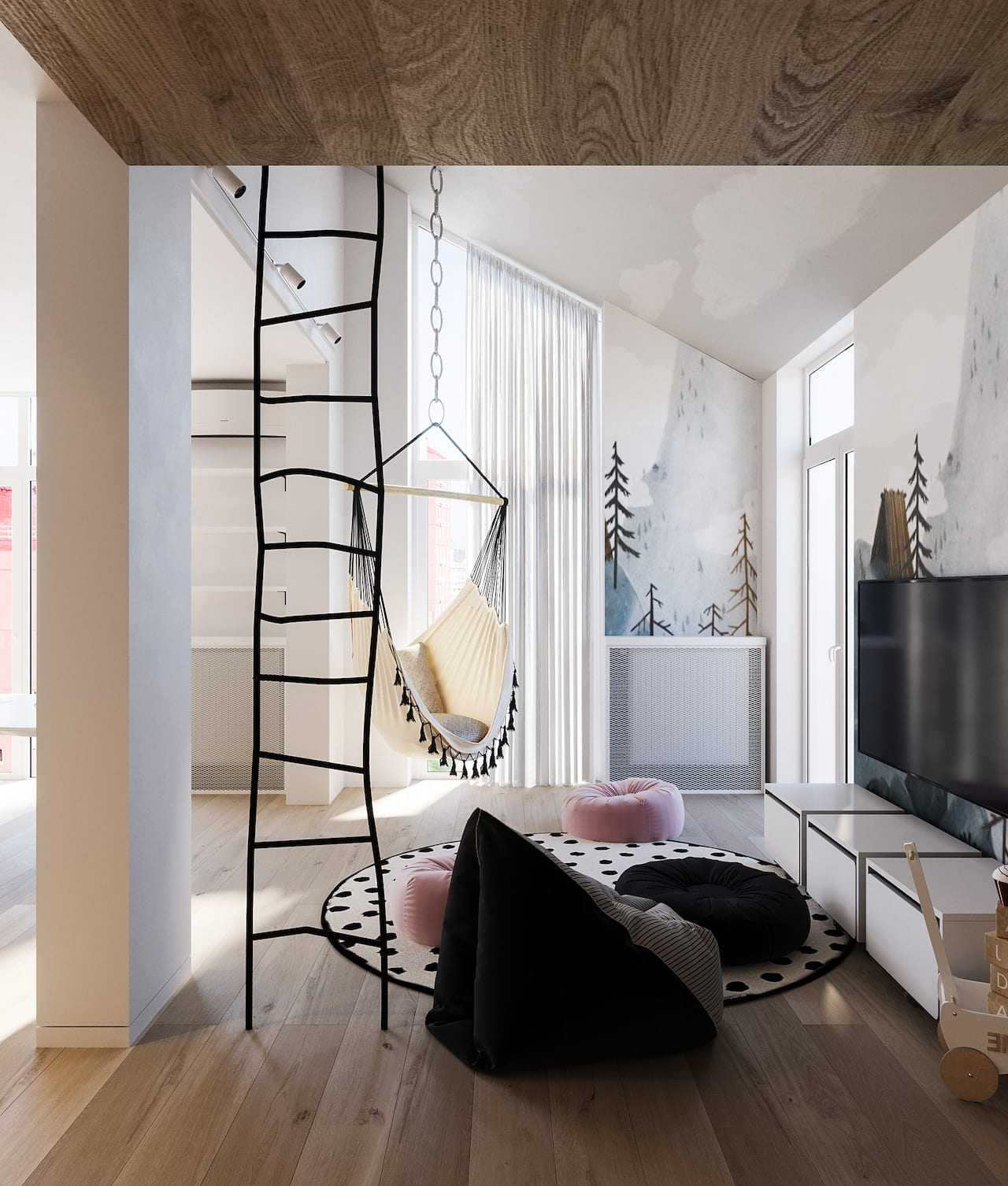 В зоне для игр лучше всего разместить теплый ковер или специальный коврик, чтобы ребенку было комфортно на нем сидеть. Небольшой ящик с разнообразными игрушками будет радовать каждый день. Что касается спортивной зоны, то в основном в ней устанавливают турник или шведскую стенку. Но помните, что дети в основном следуют за взрослыми. Поэтому старайтесь делать утреннюю зарядку всей семьей каждый день.