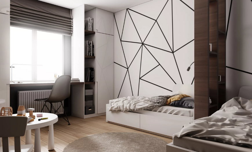 Выбрать дизайн в хрущевке или другой планировке «по возрасту» проще, если в качестве мебели брать простые, строгие линии спального ложа, шифоньера, рабочего стола. Предметы интерьера должны быть высокого качества, способные прослужить много лет. Школьники обычно много двигаются, играют, что-то роняют, проливают. Низкого качества мебель потребует быстрой замены.