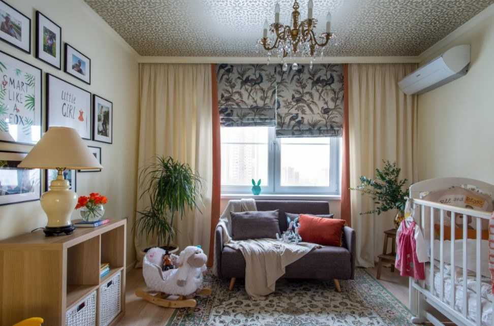 Цветовая связка — прием, где перекликается орнамент на монотонных шторах с другими элементами декора.