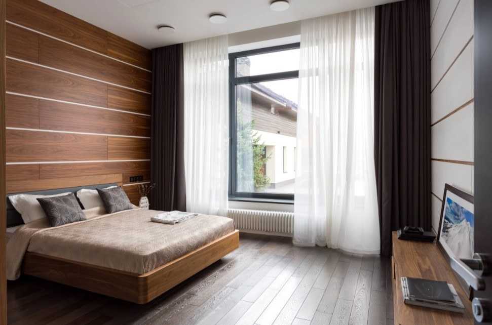 Игра на контрасте сделает комнату интересной. Например, коричневым стенам подойдут бежевые шторы.