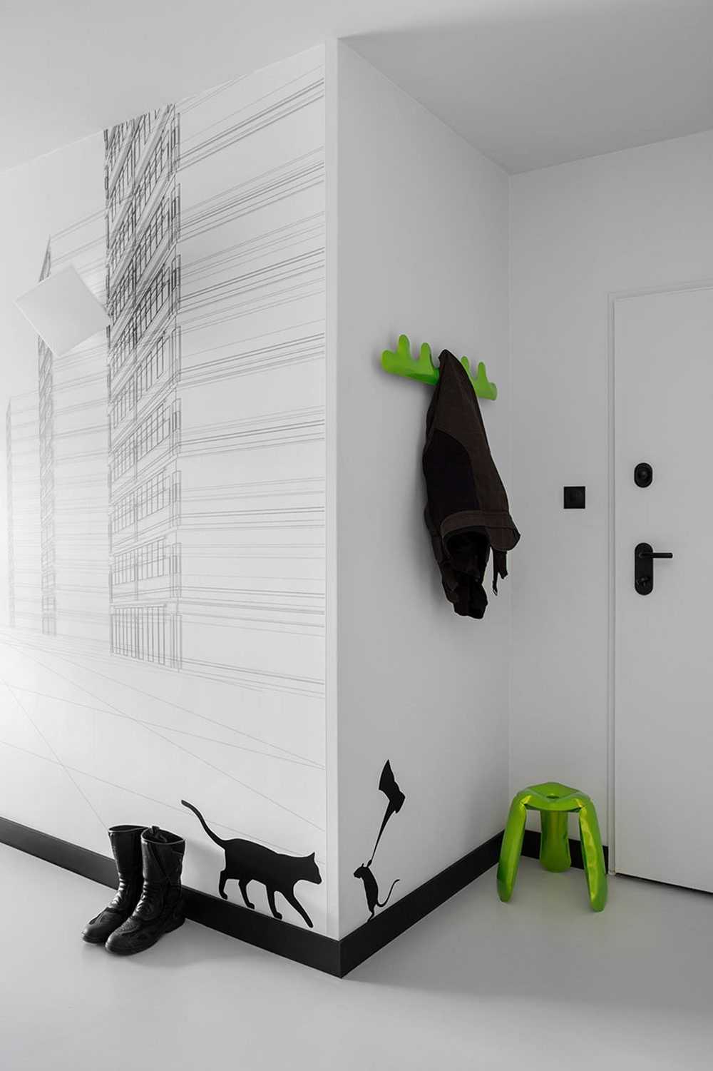 - Лаконичная игра на контрастах. Маловероятно, что помещение, оформленное в виде зебры, будет уютным и подарит умиротворение. Приветствуется игра с размерами и формами.