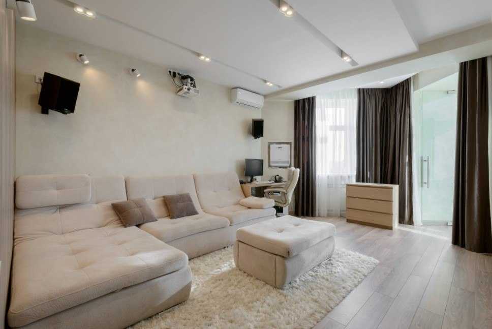 - Простор. Сейчас уже практически невозможно встретить гостиную с различными ширмами и перегородками. Это объясняется тем, что кроме солнечных лучей, в комнате должен циркулировать еще и воздух. Если вы являетесь обладателем небольшого помещения, попробуйте объединить его с кухней. Идея квартиры-студии актуальна уже многие годы, поскольку создает иллюзию расширения площади.