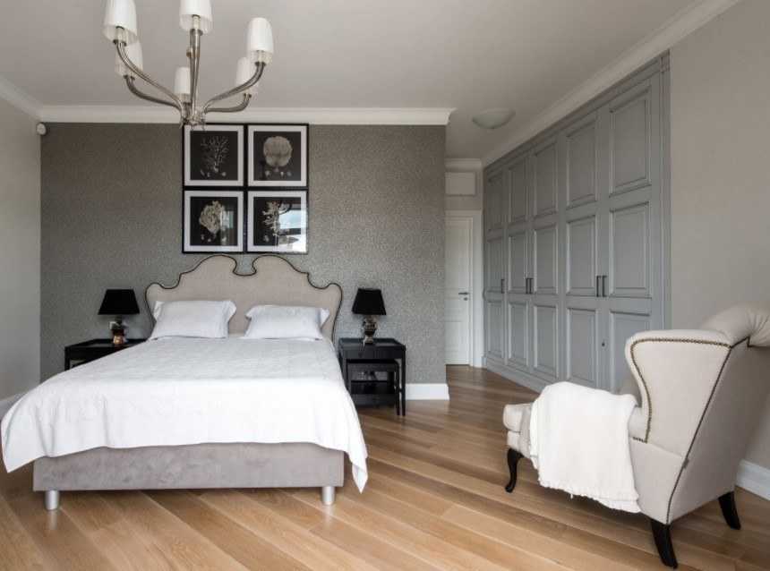 Неоклассика не подходит для квартиры типа хрущевки. Для подчеркивания особенностей стиля необходимо свободное пространство. Основные варианты отделки для пола-древесина, ламинат или паркет темного оттенка, для стен – светлые обои с мелким орнаментом, для потолка – штукатурка белого цвета. При выборе мебели стоит отдать предпочтение сочетанию красивого текстиля и натурального материала.