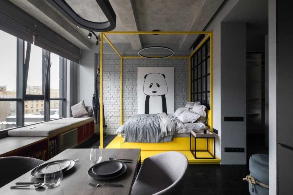 Сочетание белого и черного имеет интересную визуализацию. Если вам нравится такая композиция, но вы хотите немного разбавить ее, используйте промежуточные цвета из одной и той же палитры. Оттенки графита и белого создадут чистую и выразительную композицию и в то же время придадут комнате комфортную атмосферу. Завершите компоновку аксессуарами в ярких цветах, чтобы создать приятный и элегантный контраст.