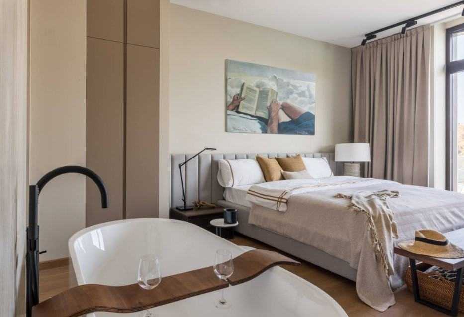 Сочетание теплого бежевого и белоснежного является проверенным способом достижения элегантного стиля в современном доме. Это также идеальное решение для небольших комнат. Теплые и яркие цвета позволяют использовать оптическое расширение комнаты благодаря естественному свету, где каждый будет чувствовать себя комфортно. Чтобы обогатить такое сочетание цветов, завершите всю стилизацию аксессуарами в нейтральных цветах с приятными на ощупь тканями.