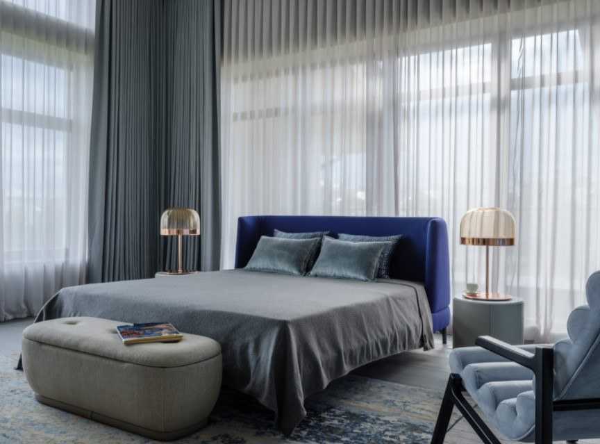 Актуальный вариант подборки цвета штор гласит, что можно подогнать окрас занавесок под цвет самого крупного предмета в интерьере комнаты. Так, например, можно сочетать цвет штор в спальне с цветом покрывала на кровати.
