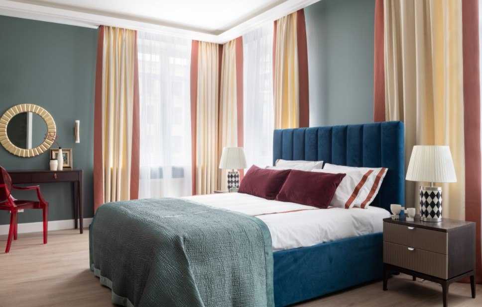 Чем ярче цвет стен, тем спокойнее должны быть шторы.