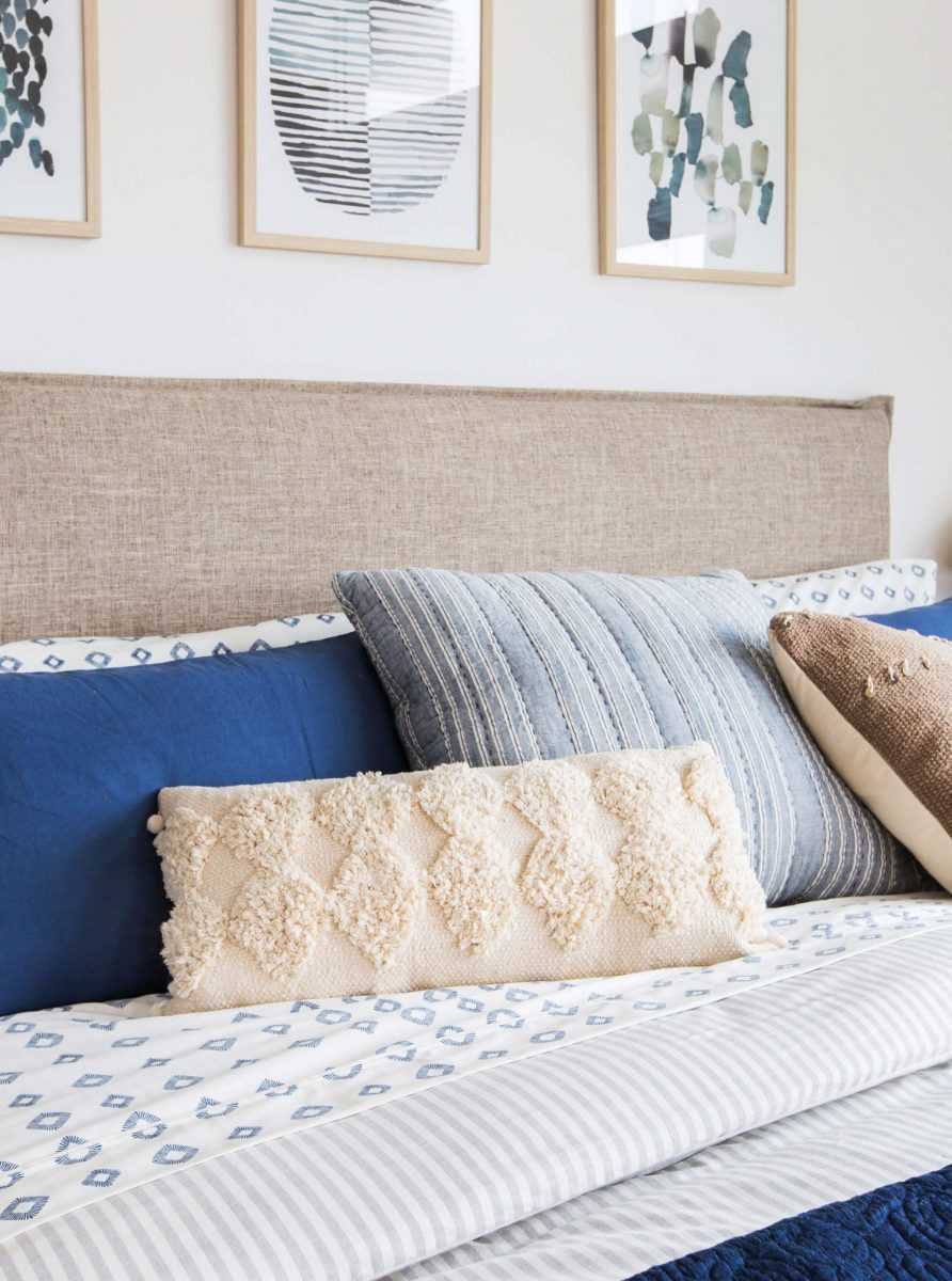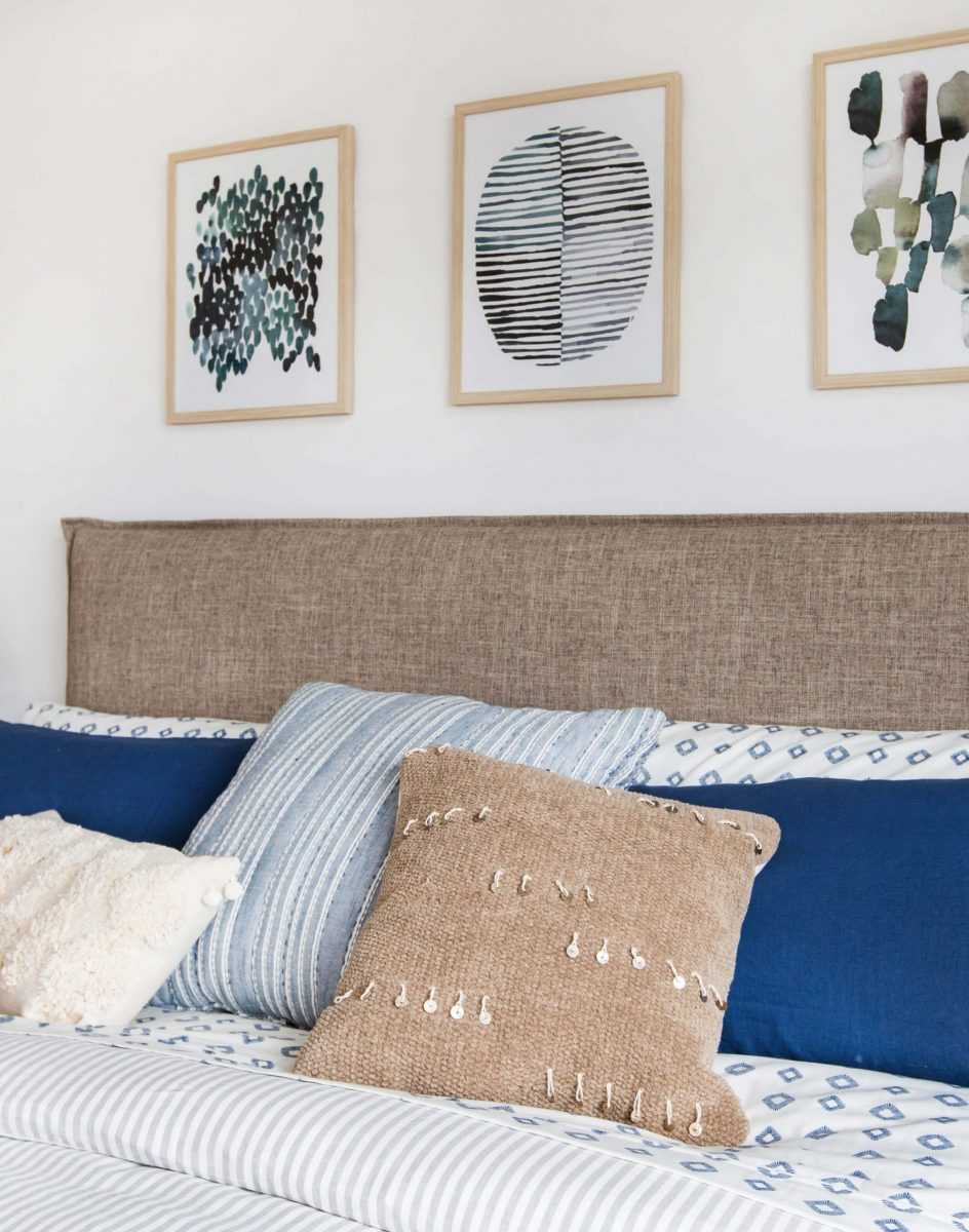 - Практичной и удобной перегородкой станет высокое изголовье у кровати.