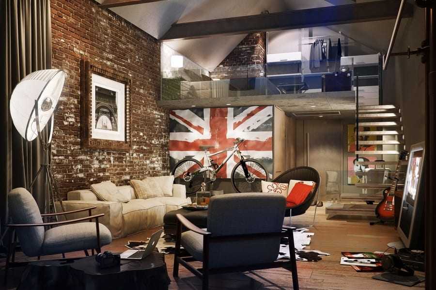 А ещё стиль подразумевает такие элементы интерьера, как нестандартные детали: плакаты, дорожные знаки, граффити и даже некоторую запущенность в концепции дизайна (облупившуюся штукатурку, обвалившийся кирпич или обшарпанные деревянные стены).