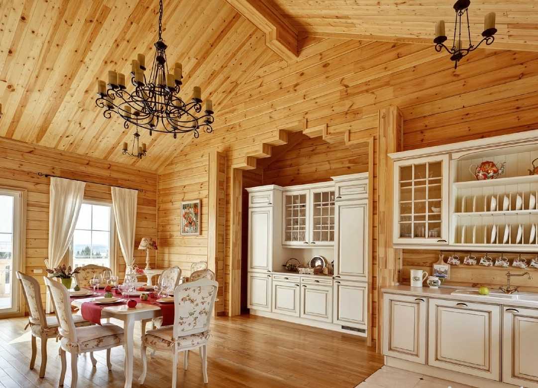 На кухне лучше всего использовать натуральный камень или плитку, потолки – обычные, белого цвета. Окна по всему дому должны быть из окрашенного в белый цвет дерева, а вот в спальне можно установить французские окна от пола до потолка. В качестве декора можно использовать камин, однако он не всегда бывает уместным.