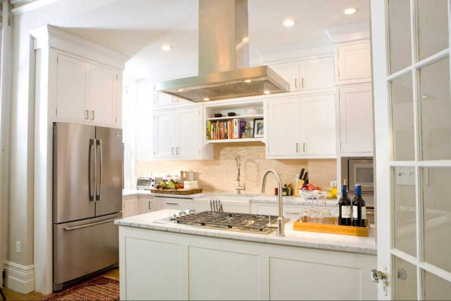 По этой причине дизайнеры с функциональной точки зрения не рекомендуют переносить холодильник с кухни. Если он не вписывается в интерьер, стоит подумать о встроенной технике, которая спрячется за фасадом.