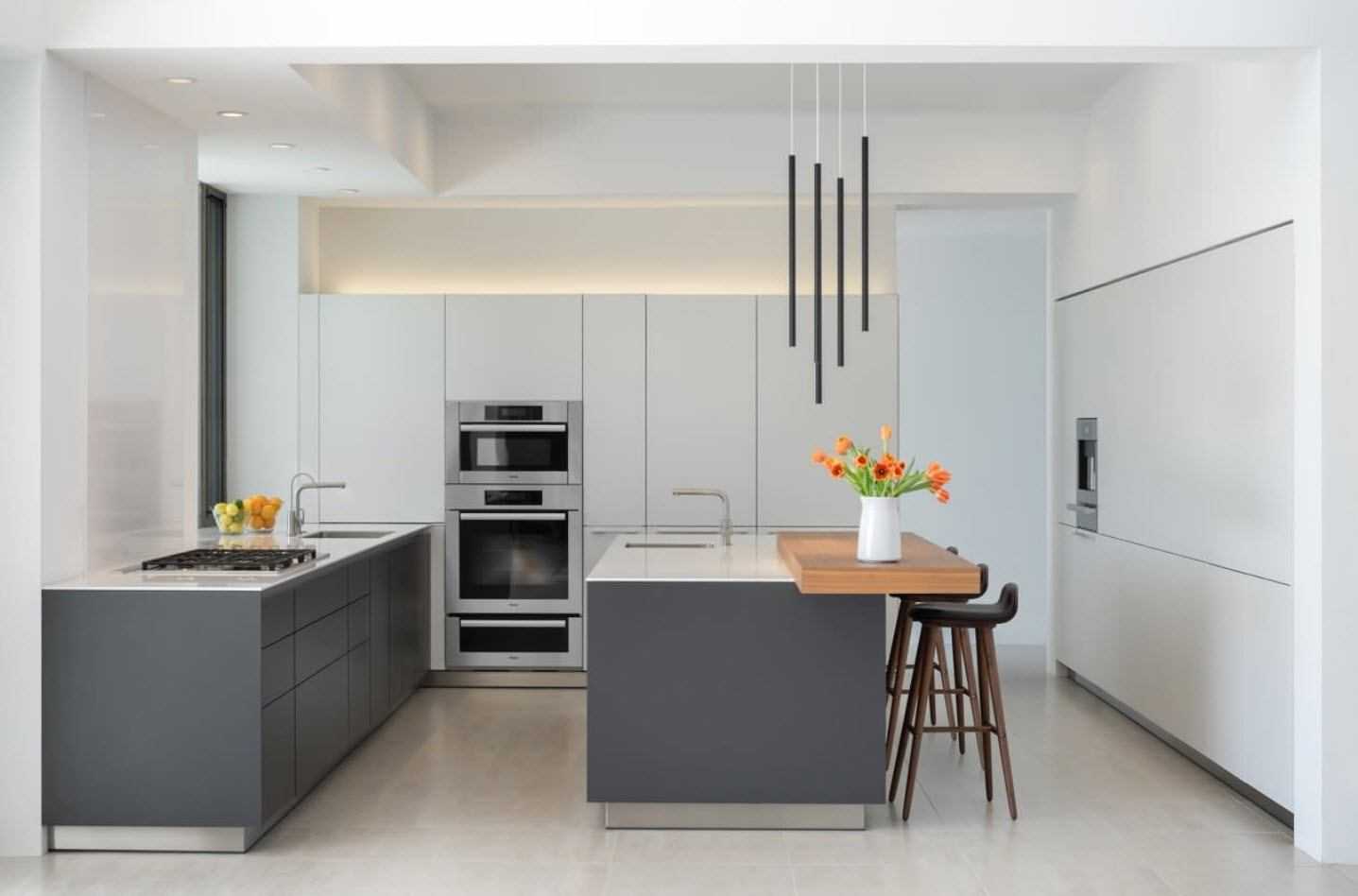 Минус в том, что для обеденной зоны не остается места, и ее переносят в другую комнату. Двухлинейная планировка лучше всего подходит для кухни, соединенной с балконом. Он вмещает обеденный стол, а на кухне выделяют место для небольшой барной стойки.