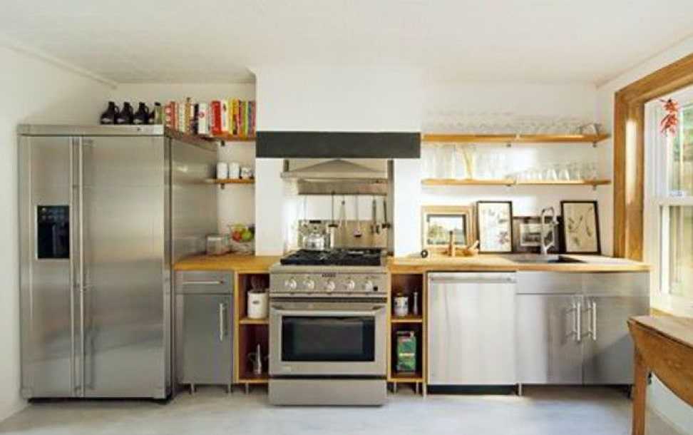 - Хорошая планировка кухонного пространства требует, чтобы у вас были широкие проходы. А этого сложно добиться в таком маленьком пространстве.