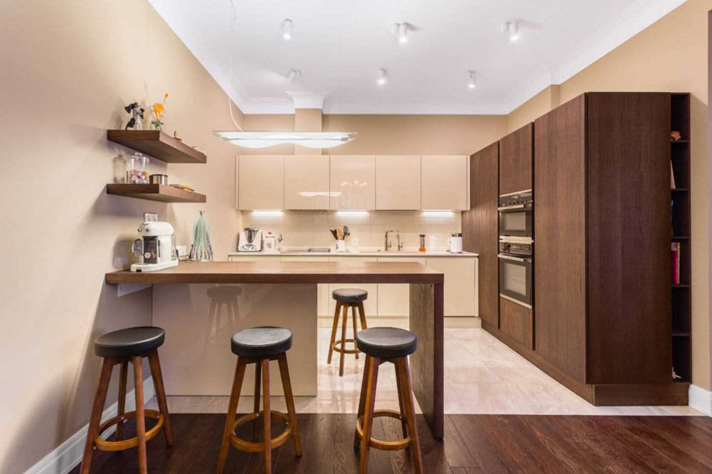 Выбор барной стойки и стульев также подойдет для мини-кухни – он сэкономит драгоценные сантиметры, а также может использоваться не только для приема пищи, но и как зона для приготовления еды.